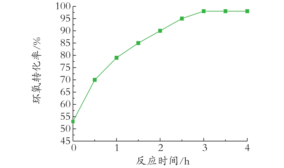 由图3可以看出,环氧转化率随着反应时间的增加而增加,当反应时间为3 h时转化率达到98%,继续延长反应时间环氧转化率基本不变。