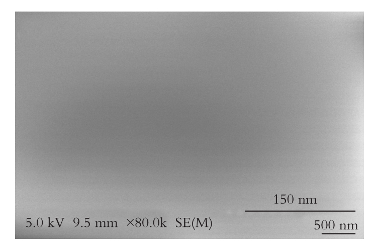 从图6可以看出,漆膜在放大倍数为8万倍时,表面较为平整光滑且无孔洞出现,说明合成的环氧树脂固化剂与环氧乳液相容性好,能将水性环氧乳液固化形成致密膜。